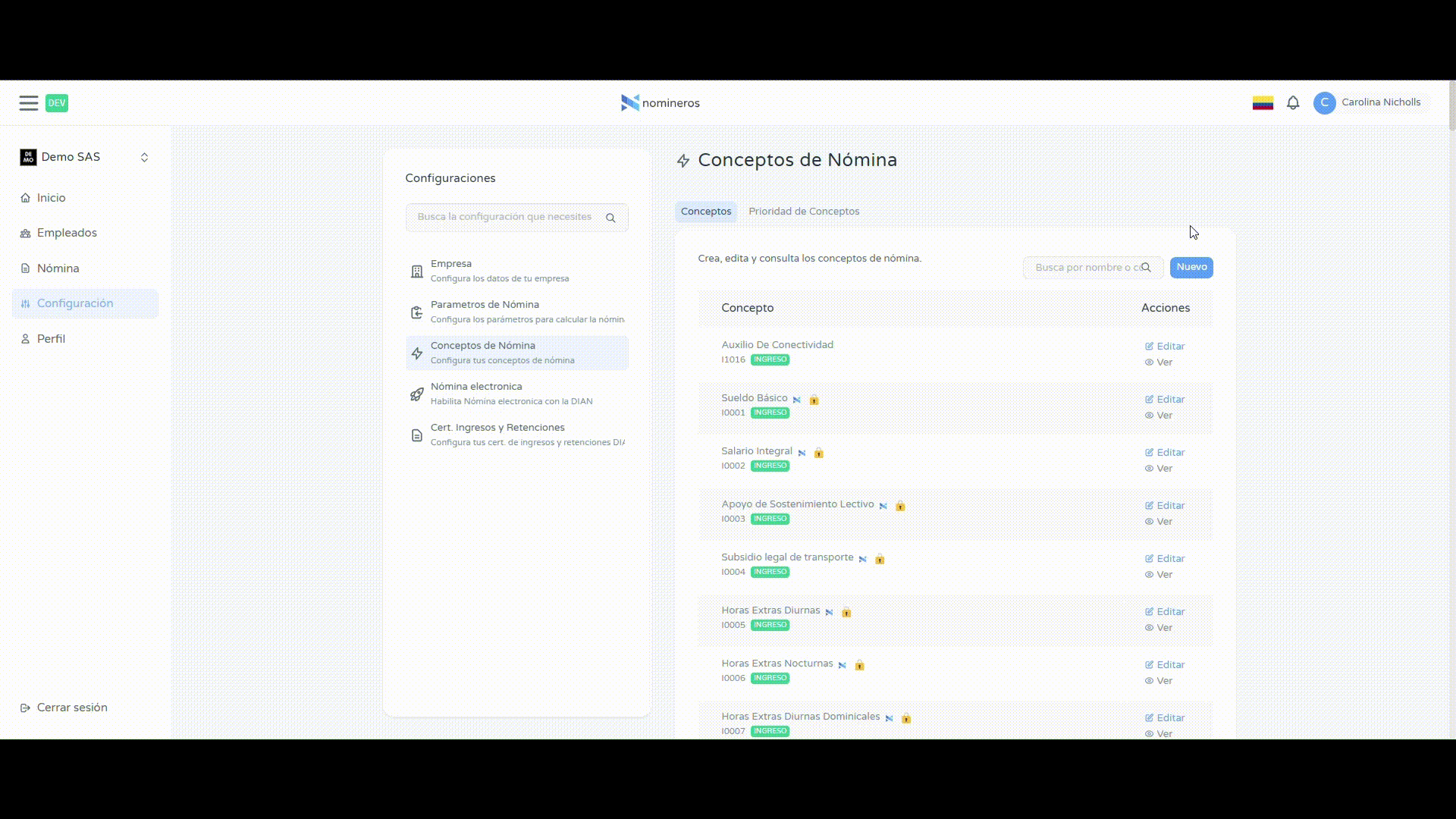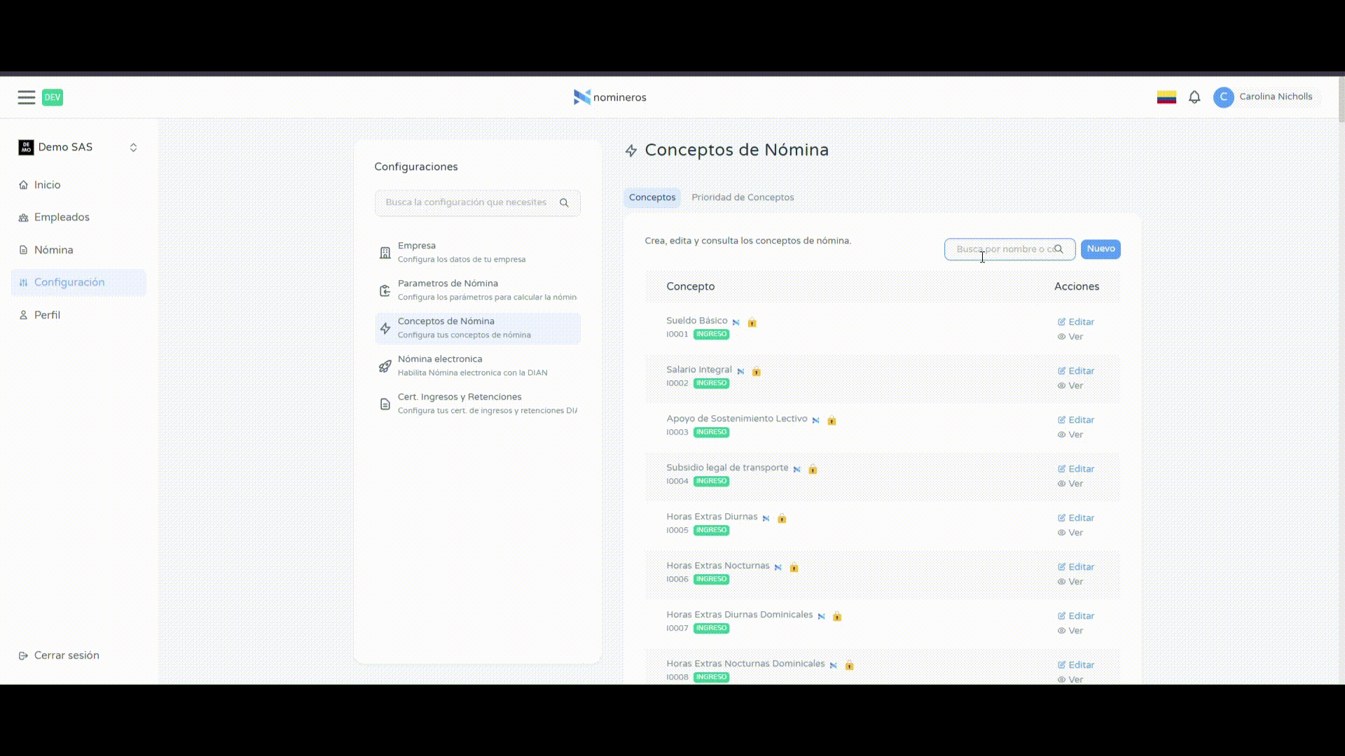 Ten en cuenta que los conceptos del estándar no se pueden editar. Estos se identifican fácilmente porque tienen el logo de Nomineros y un ícono de candado. Si necesitas personalizar alguno de estos conceptos, deberás solicitarlo a través del soporte.