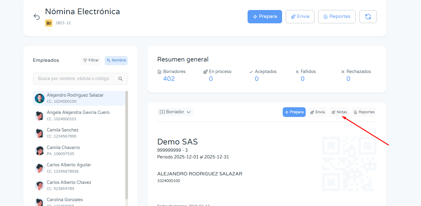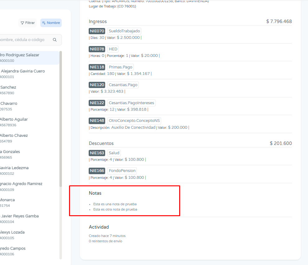 A partir de ahora, podrás crear notas directamente en cada comprobante de nómina electrónica para dejar claridad sobre situaciones específicas del documento.